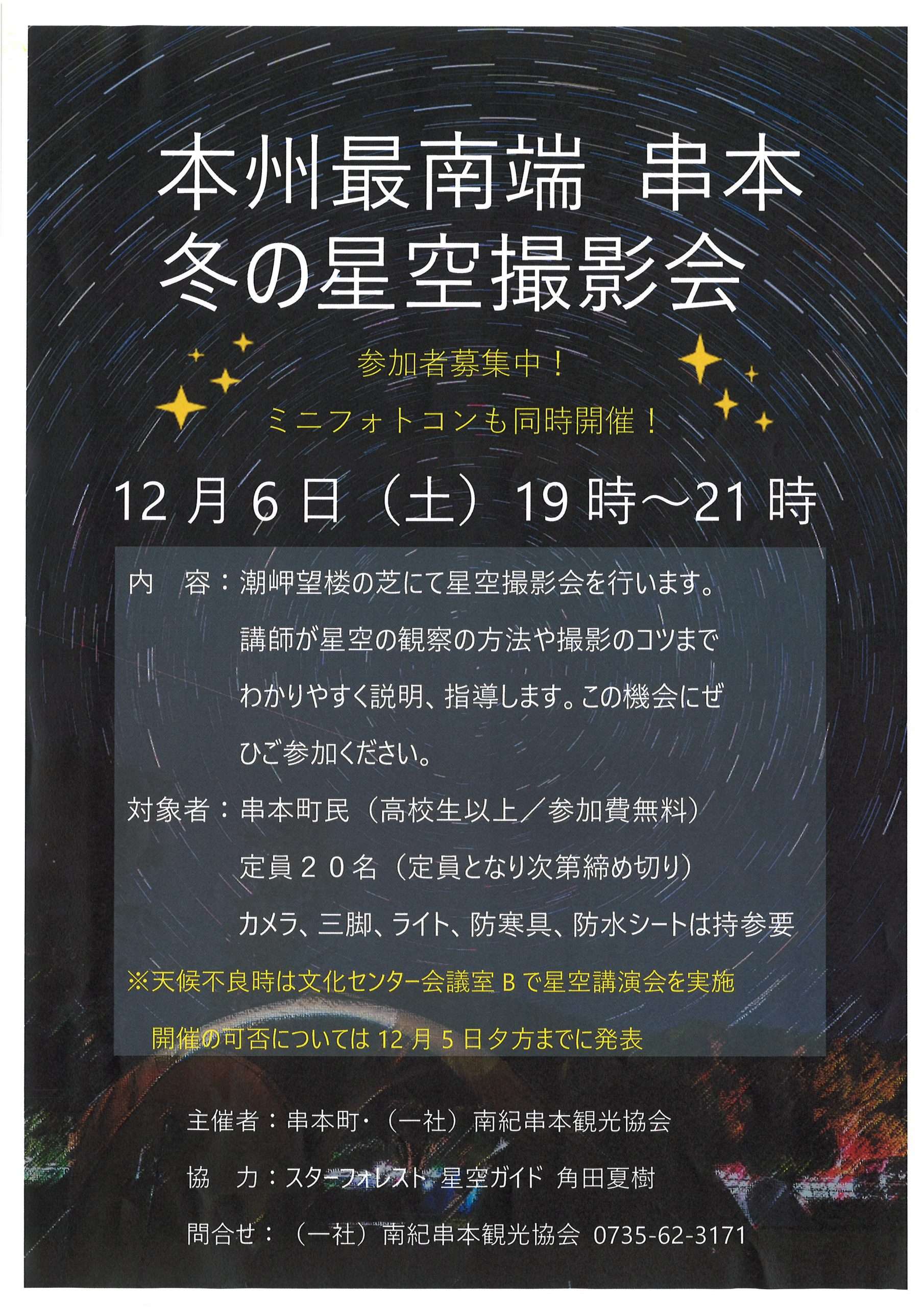 本州最南端 串本 冬の星空撮影会開催のお知らせ