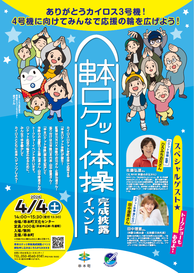 「串本ロケット体操」誕生を記念して体操のお披露目&トークショーイベントが開催されます。
